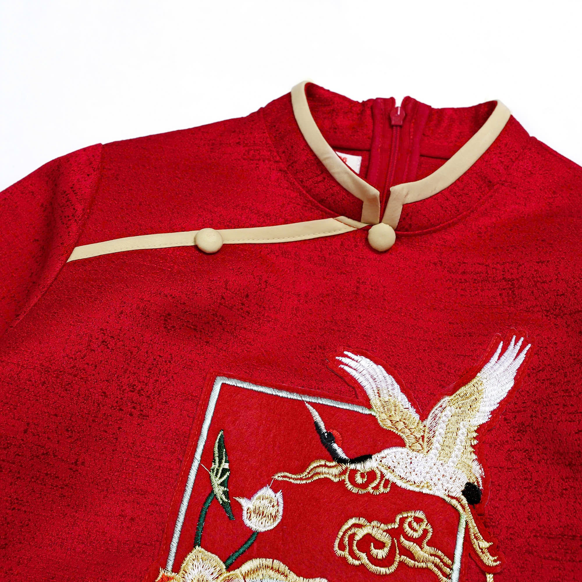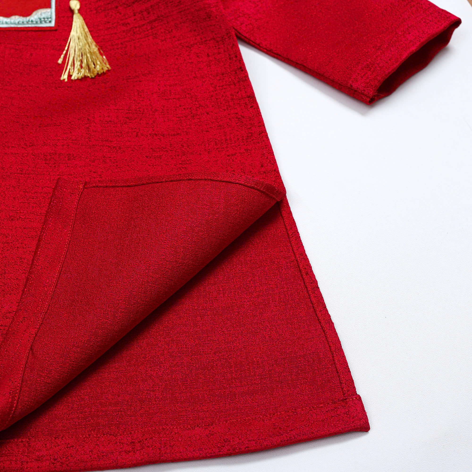 Áo Dài Gấm Bé Trai Truyền Thống Thêu Hạc Đính Tua Rua Tết Cho Bé Nexxi