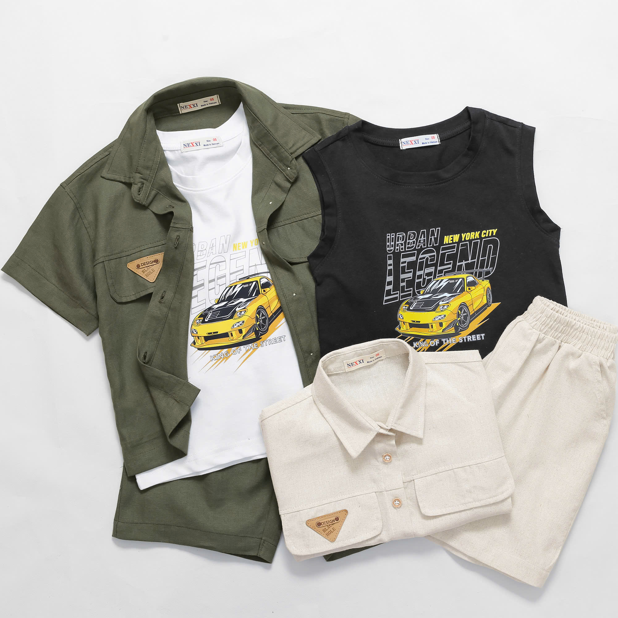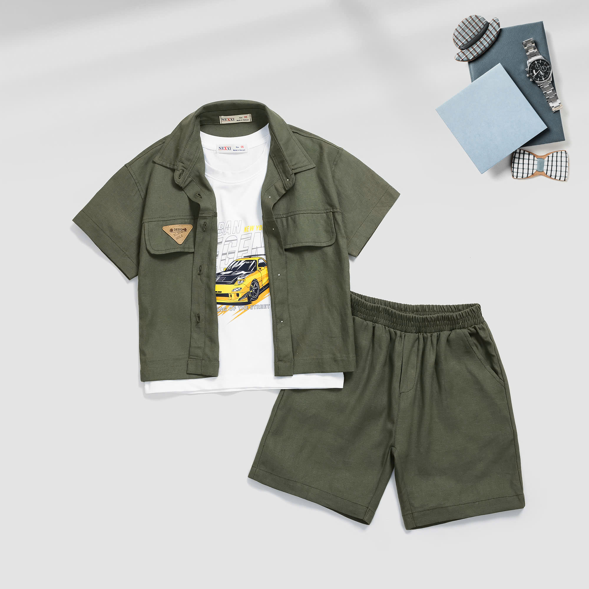Set Bé Trai Linen 3 Món In Xe Oto Legend cho bé trai Nexxi