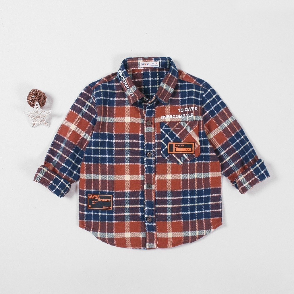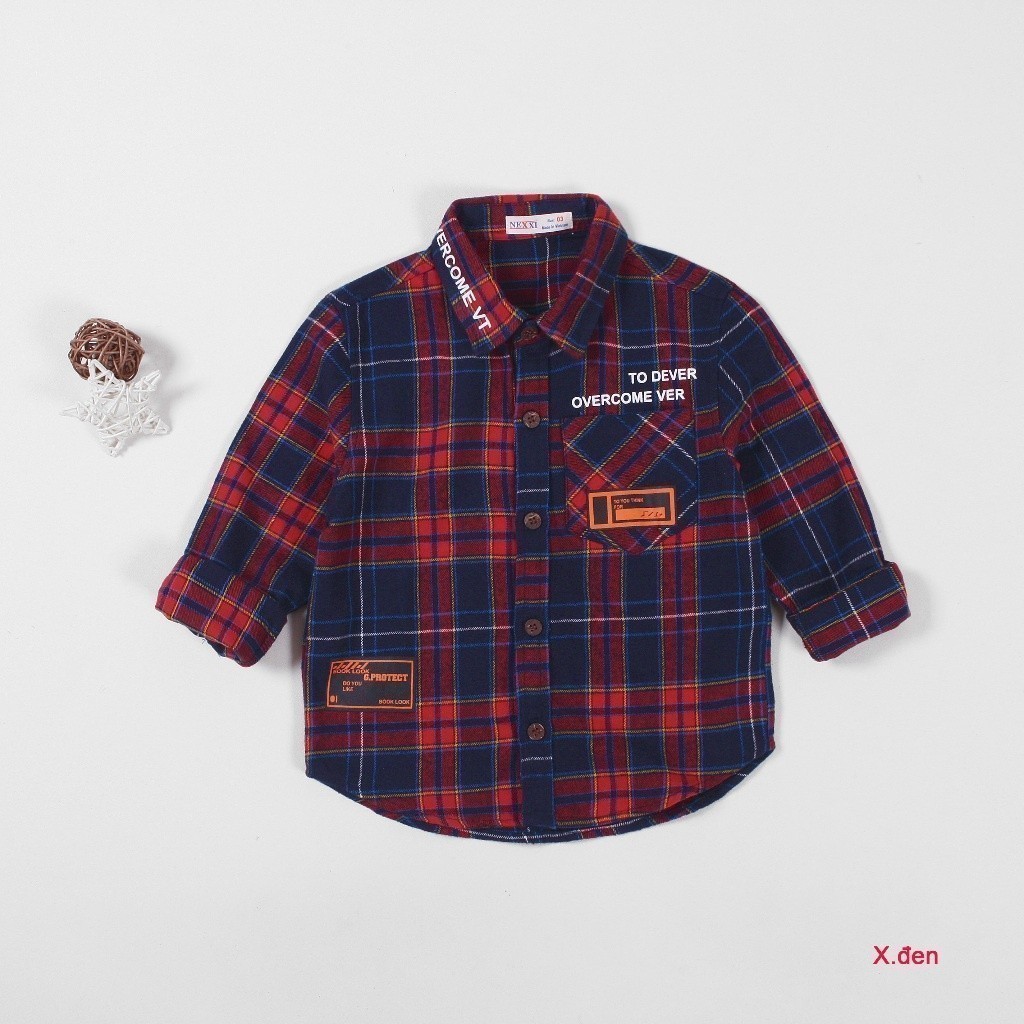 Áo Sơ Mi Dài Tay Caro Bé Trai In Chữ DEVER KHUYẾN MÃI - ƯU ĐÃI