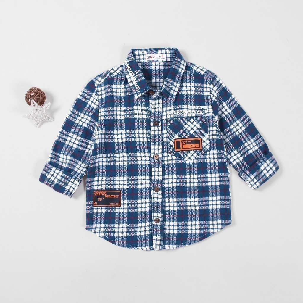 Áo Sơ Mi Dài Tay Caro Bé Trai In Chữ DEVER