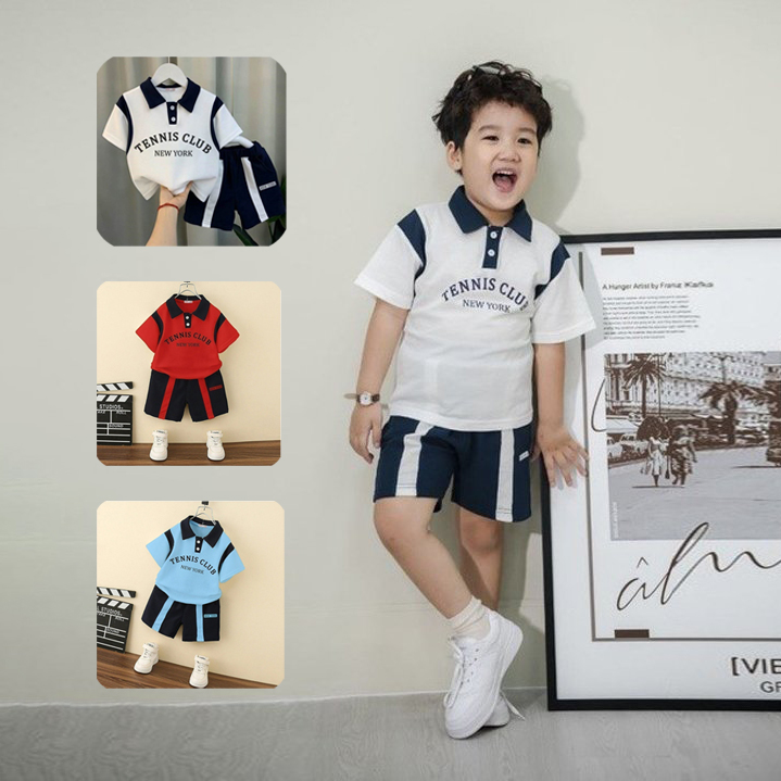 Bộ Thun Ngắn Tay Thể Thao Bé Trai In Chữ Tennis Club KHUYẾN MÃI - ƯU ĐÃI
