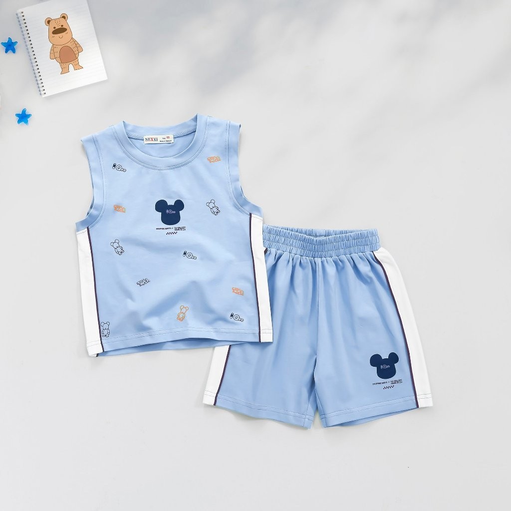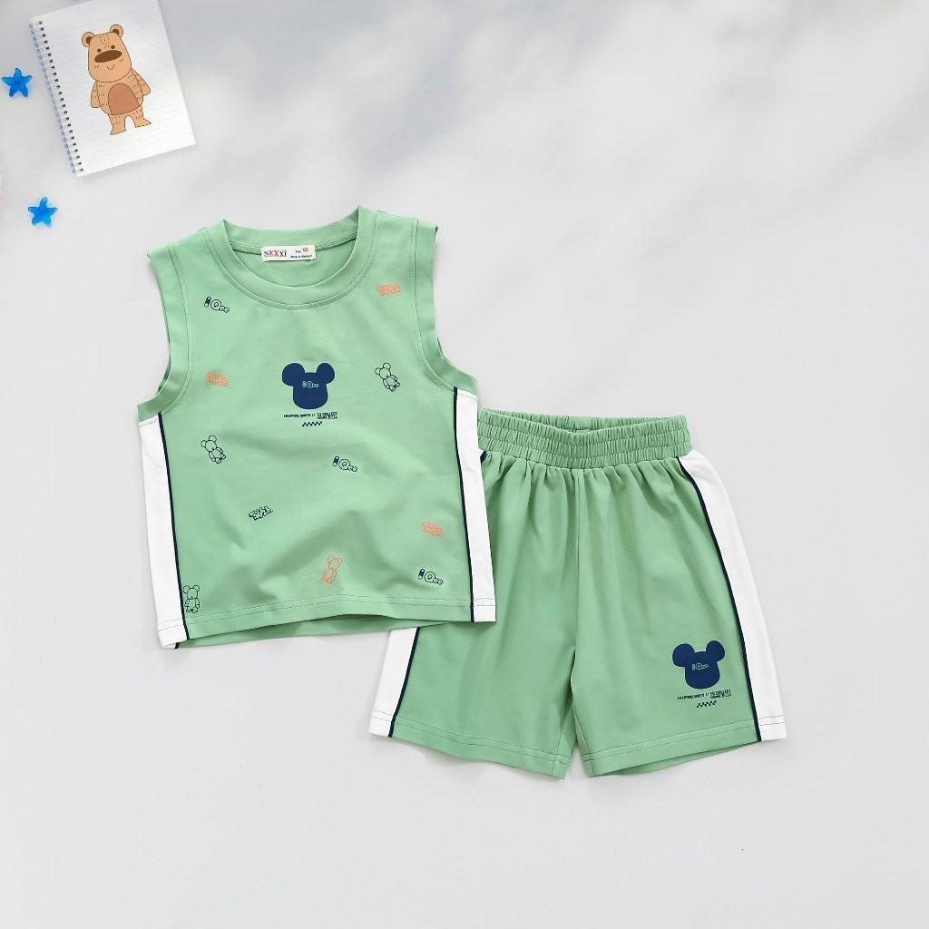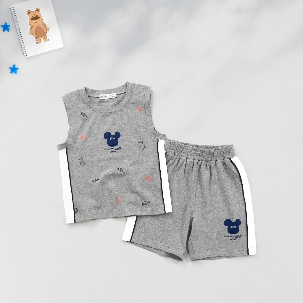 Bộ Thun Sát Nách Cho Bé Trai In Hoạ Tiết Gấu Qee KHUYẾN MÃI - ƯU ĐÃI