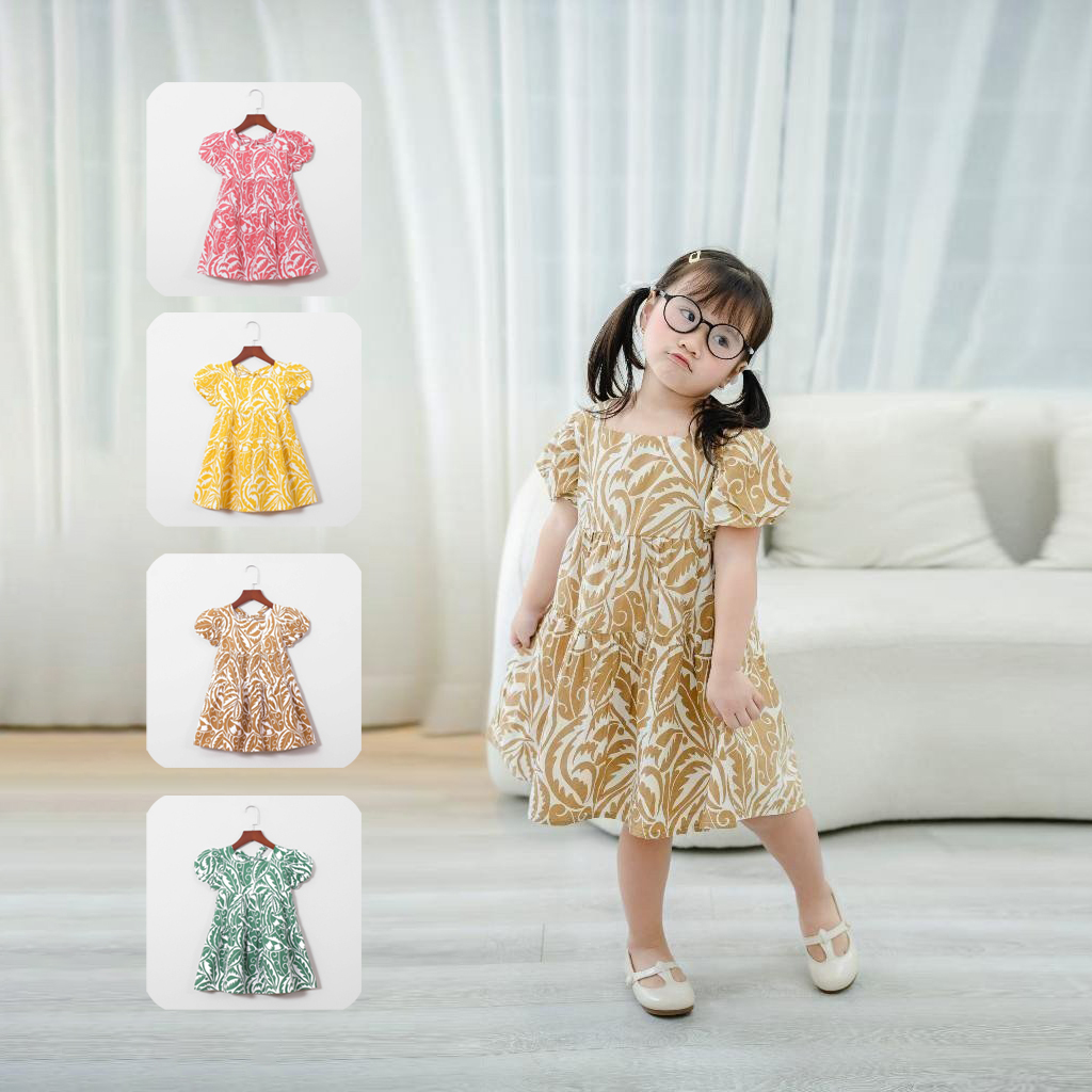 Đầm Babydoll Bé Gái Chất Liệu Vải Kate Họa Tiết Nổi Bật