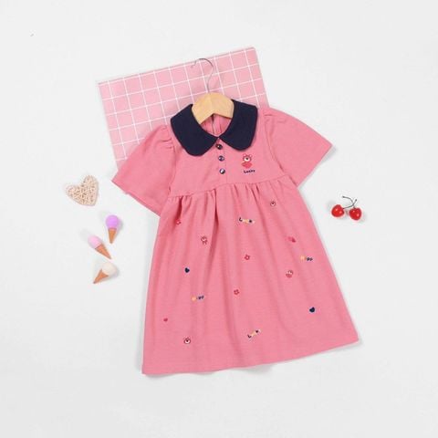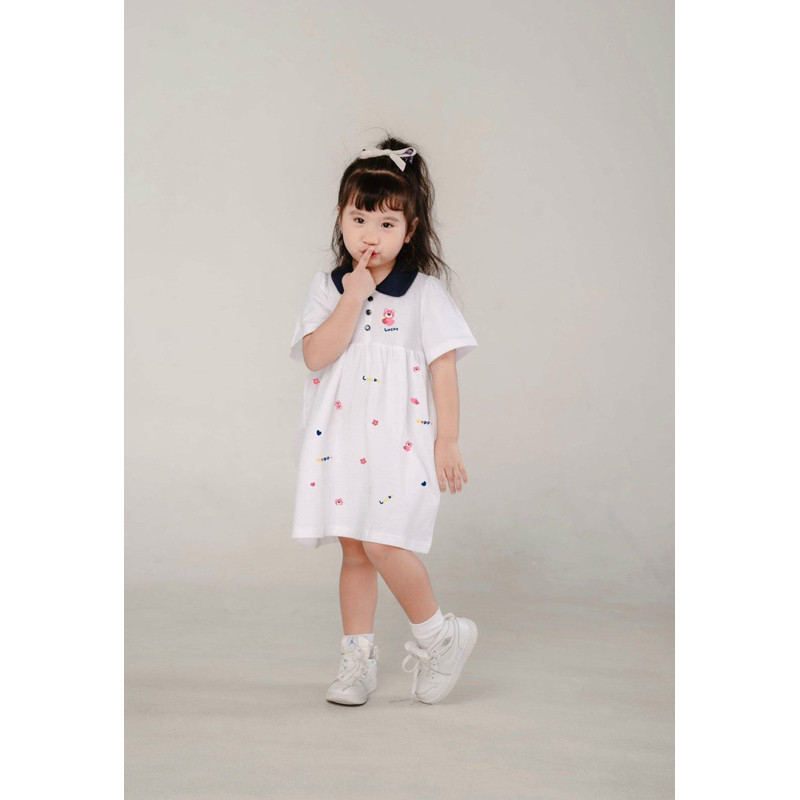 Đầm Thun Cổ Bẻ Babydoll Bé Gái In Họa Tiết Gấu Lotso