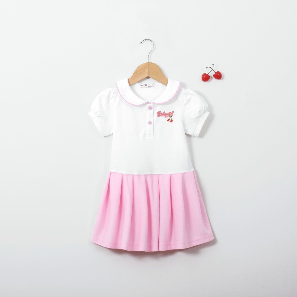 Đầm Thun Polo Bé Gái Xếp Ly Thêu Chữ Babygirl