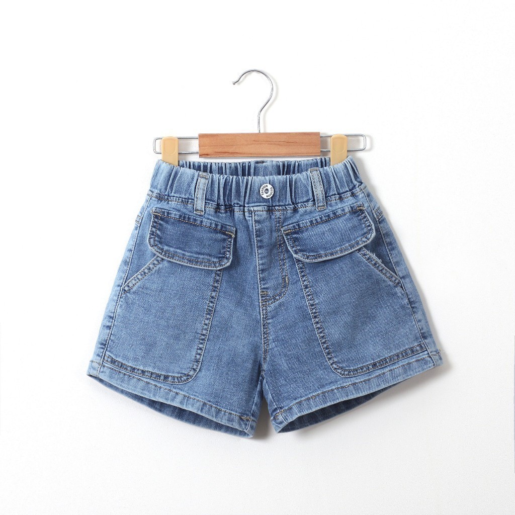Quần Đùi Jean Lưng Cao Túi Nắp Bé Gái