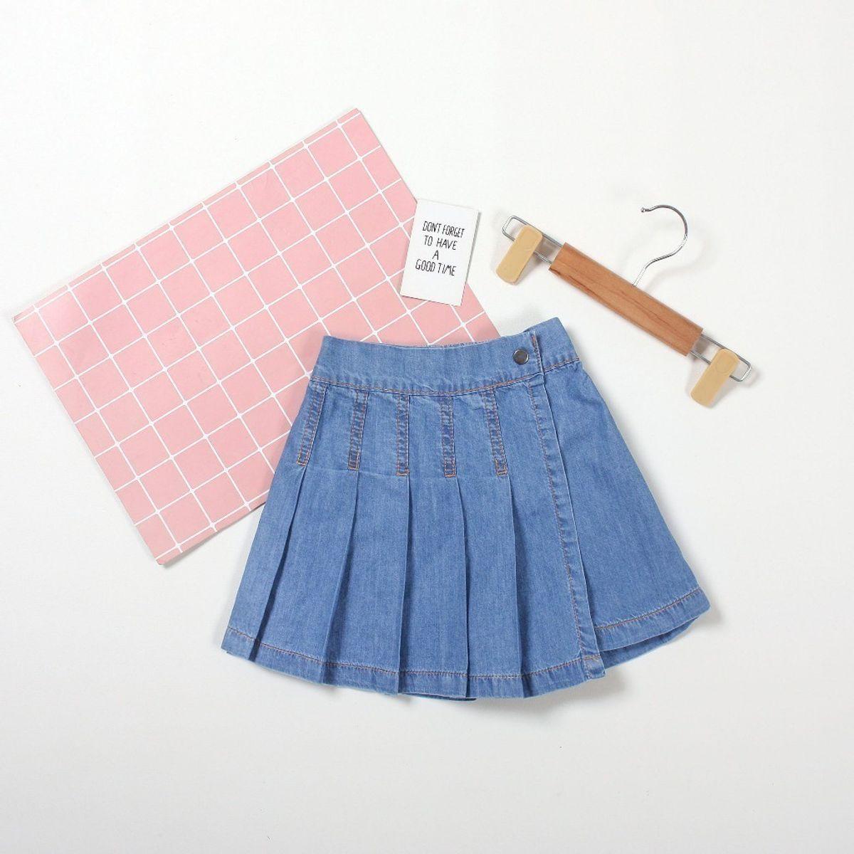 Quần Váy Jean Tà Xếp Ly Bé Gái